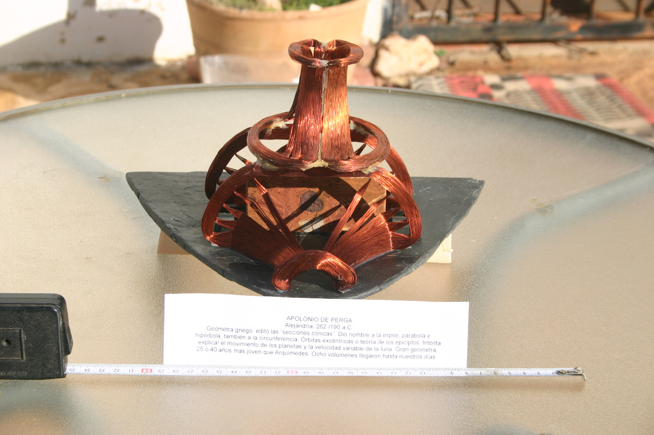 Geómetra griego, editó las "secciones conicas". Dió nombre a la: elipse, parabola e hiperbola tambien a la circunferencia. Teorema de las orbitas excéntricas ó teoria de los epiciplos. Intenta esplicar el movimiento de los planetas y la velocidad variable de la luna. Gran geometra, 25 ó 40 años más joven que Arquimedes. Ocho volumenes llegaron hasta nuestros dias.